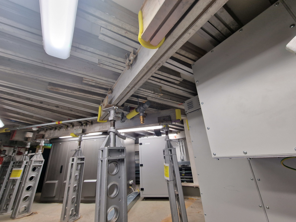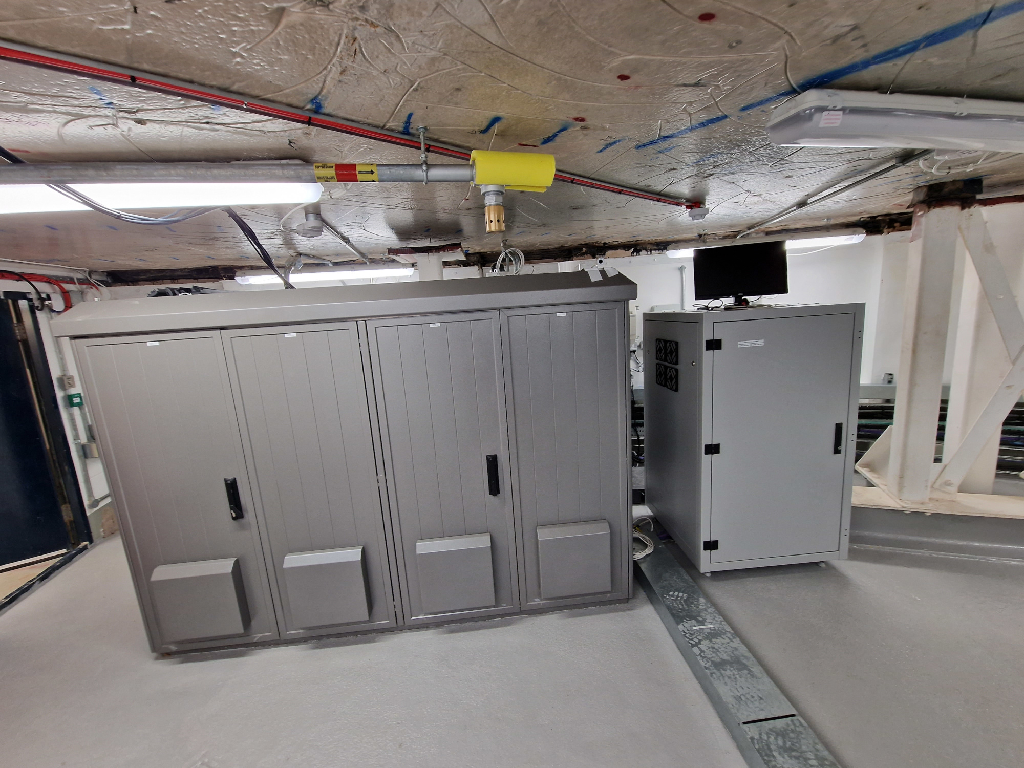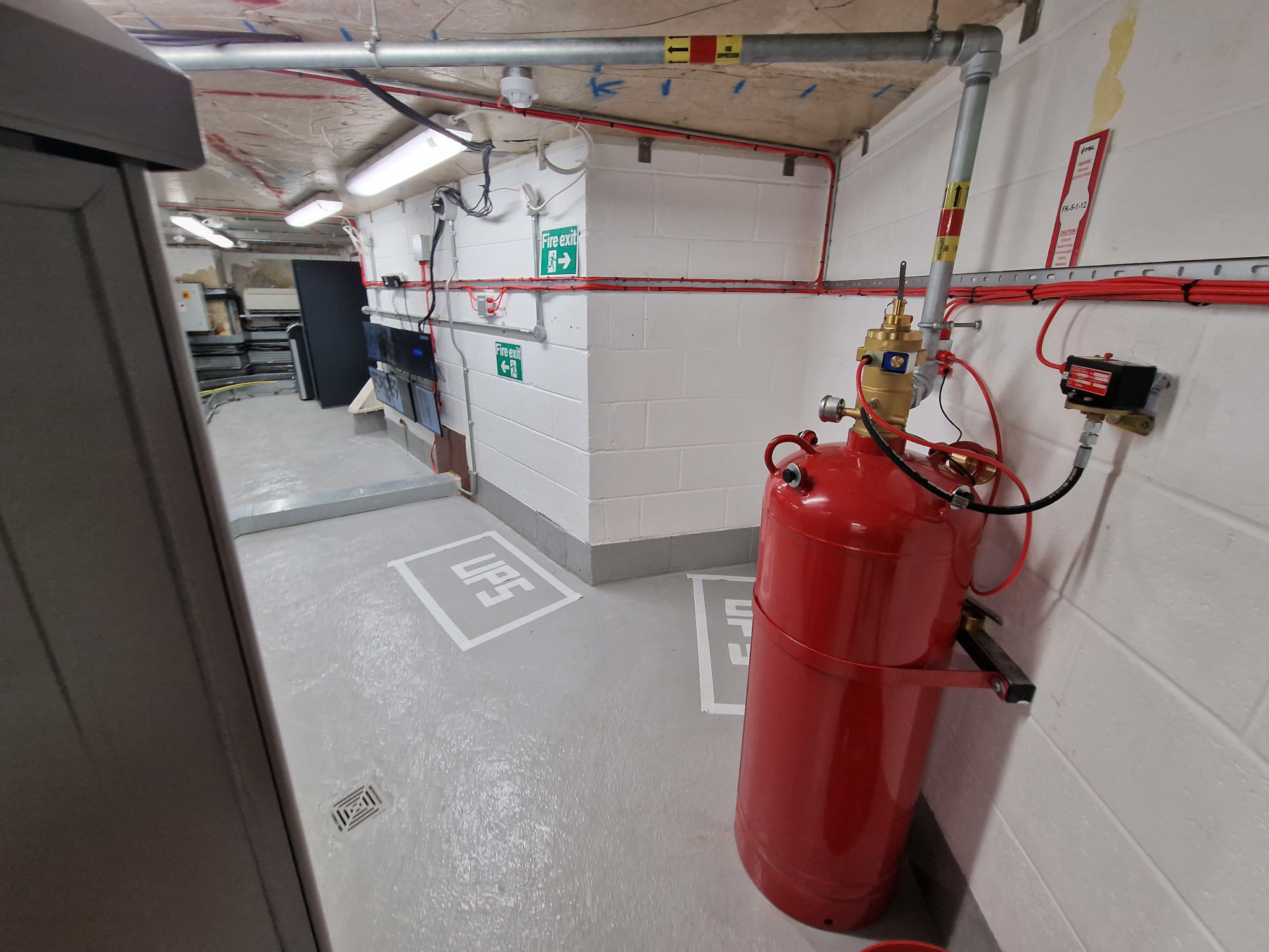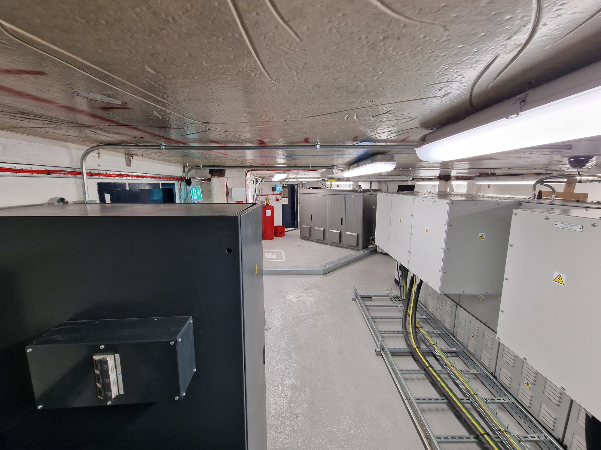Completion works included airtight blockwork extension, reinstatement of lighting, AC, fire systems and a reconfigured gas suppression system—resetting the plantroom for safe, sustained performance.