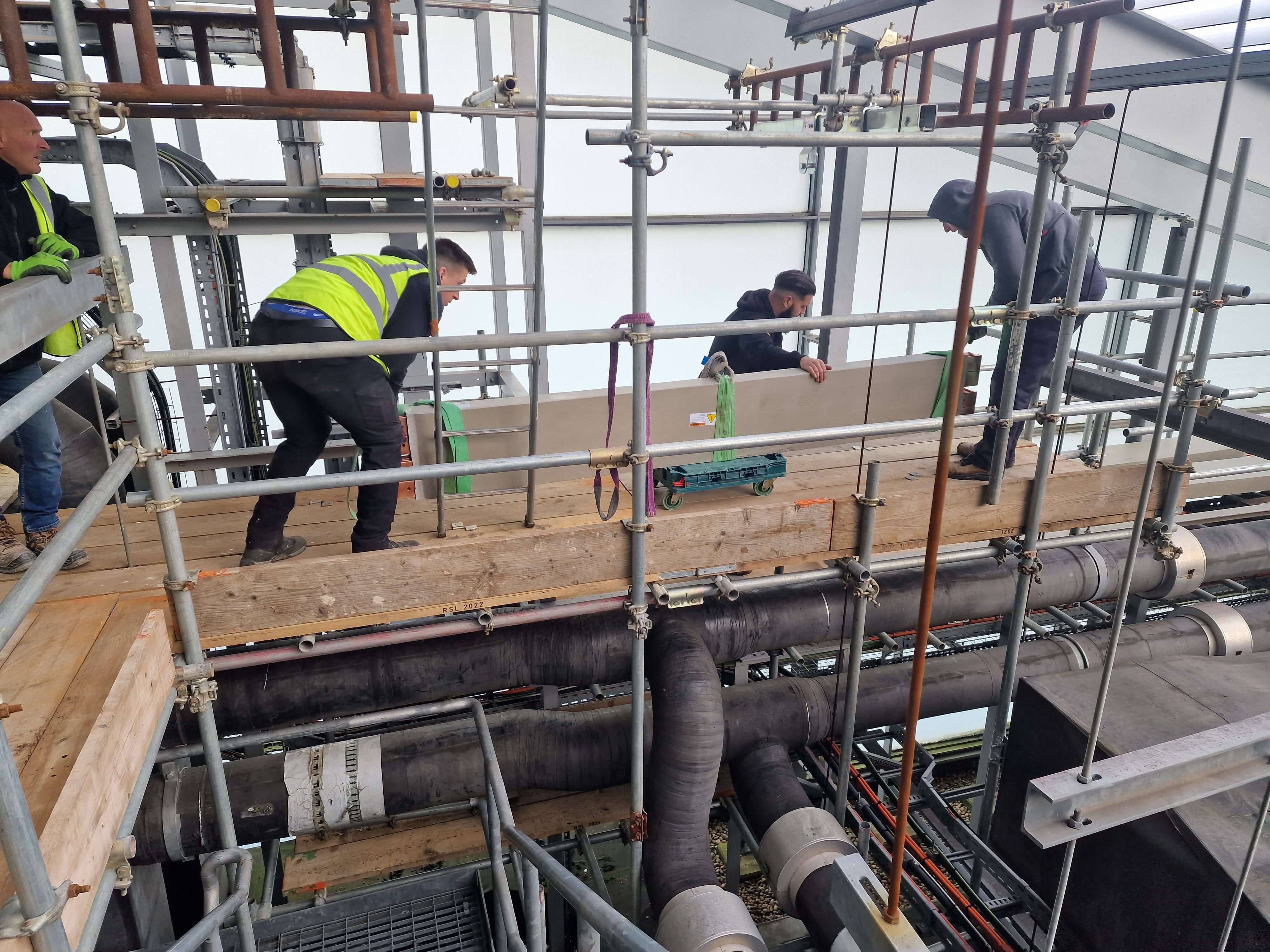 Full inspection and removal of rooftop louvres, switchgear segments, and trunking to enable transformer access without compromising surrounding systems.